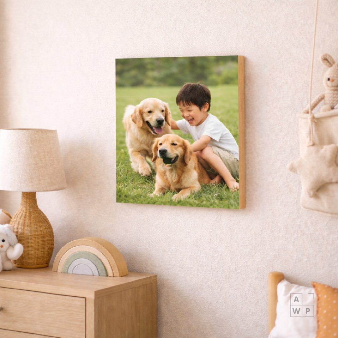写真がより自然に、その空間と一体化するよう「木材 - Wood」キャンパスにプリントすることで、あなたらしいアートな空間を作り出すことができます。